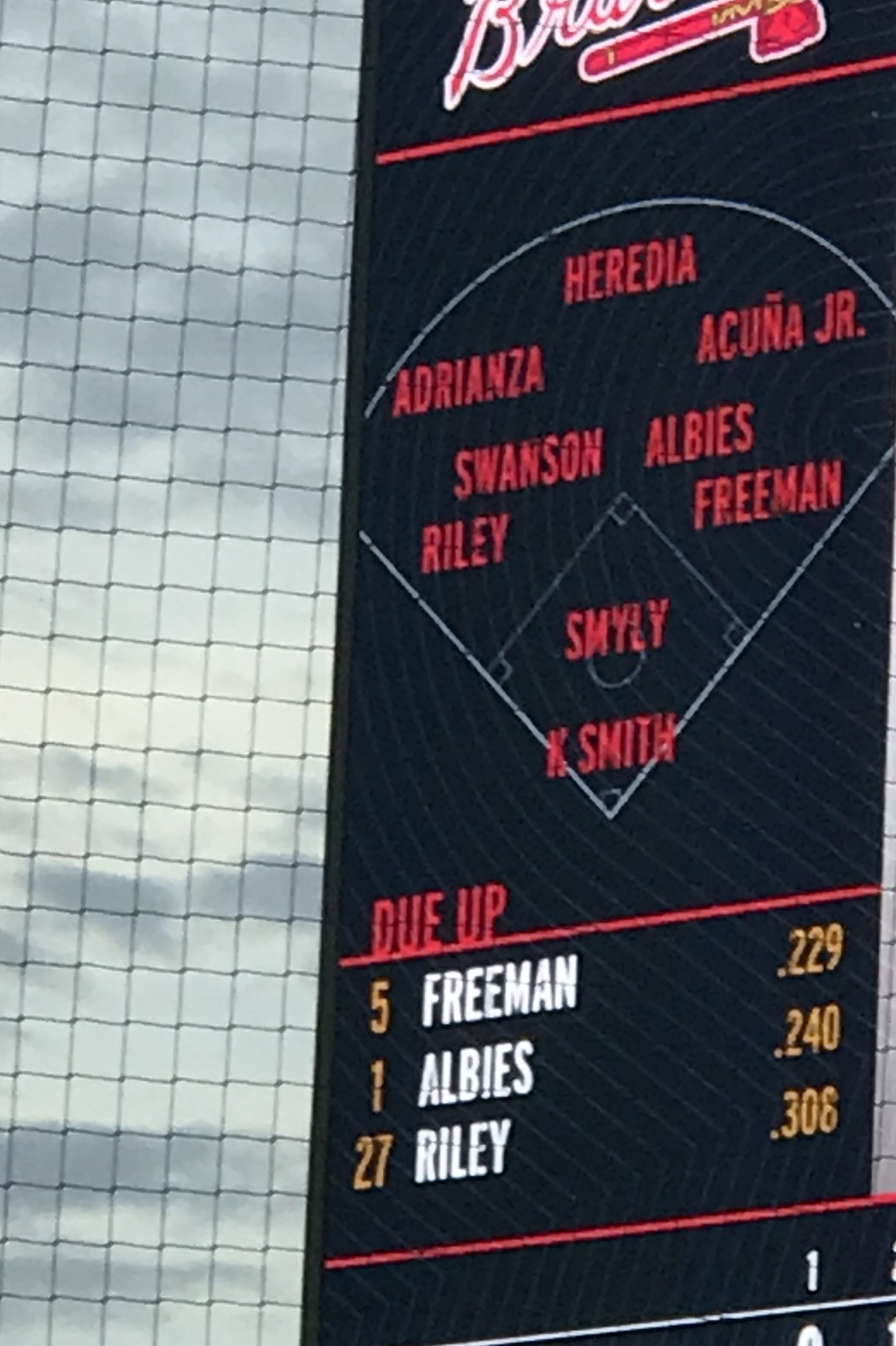 Atlanta had the lead in the beginning of the game. In the bottom of the second inning, Ronald Acuña Jr.u hit a two-run bomb to give them the lead at 2-0. After his home run, Miami came back to score four runs; one in the top of the third, and the other three in the top of the sixth. That gave them the lead at 4-2. Atlanta made it a 4-3 game in the bottom of the sixth when Dansby Swanson had an RBI double that scored Freeman.